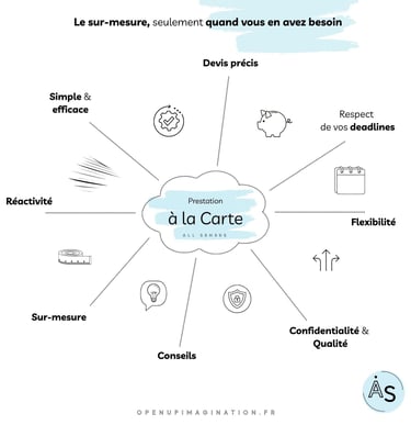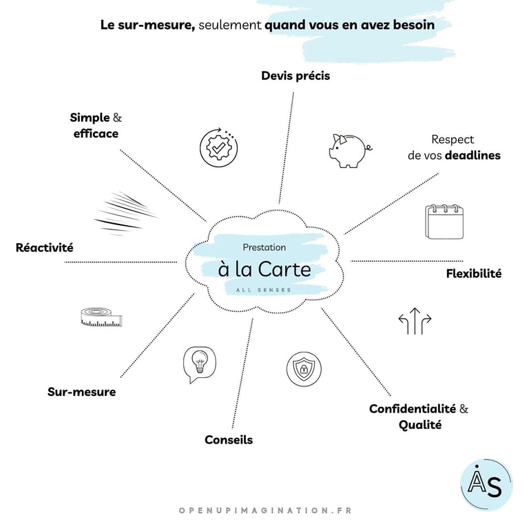 Vous avez un besoin ponctuel, tels que des templates pour vos réseaux sociaux, un document premium pour une formation, des supports visuels pour un événement interne ou un séminaire, sans nécessiter un accompagnement régulier ? Je vous propose un dispositif flexible, sans engagement ni volume minimum. Chaque demande fait l’objet d’une analyse précise et d’un devis personnalisé. La tarification est établie en toute transparence, en fonction du temps réellement consacré à la mission, afin de garantir une prestation ajustée et équitable.